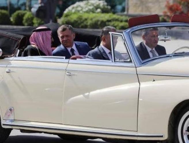 ومن تفاصيل الاستقبال المهيب لخادم الحرمين، السيارة التي أقلت الملك سلمان والعاهل الأردني الملك عبدالله الثاني وتعود هذه السيارة بالذاكرة إلى ستينيات القرن الماضي، حيث تمتلك أهمية وجدانية للملك عبدالله الثاني؛ لكونها المركبة التي استخدمت عام 1961 في زفاف والده المغفور له الملك الحسين بن طلال، ووالدته الأميرة منى الحسين.