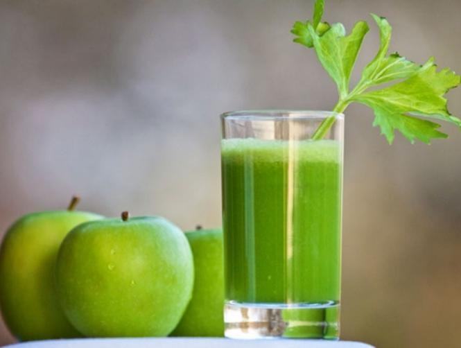 مكونات المشروب: تفاحة خضراء، حبتان من الكيوي، نصف حبة خيار، عصير ليمونة خضراء، كوب ماء مثلج، ملعقة عسل طبيعي، أوراق النعناع الطازجة.