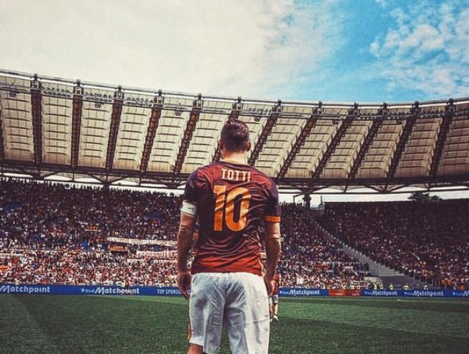 وظلت الجماهير في المدرجات عقب المباراة، التي انتهت بفوز روما 3-2، لوداع توتي، الذي تلقى هدية رمزية من رئيس النادي جيمس بالوتا، في ظل أجواء عاطفية مؤثرة، حيث انهمرت الدموع من عيني الأسطورة، وهو يحمل أطفاله برفقة زوجته، في الوقت الذي أجهشت الجماهير فيه بالبكاء، وهي تحمل لوحات الرقم 10، عندما كان توتي يطوف الملعب.