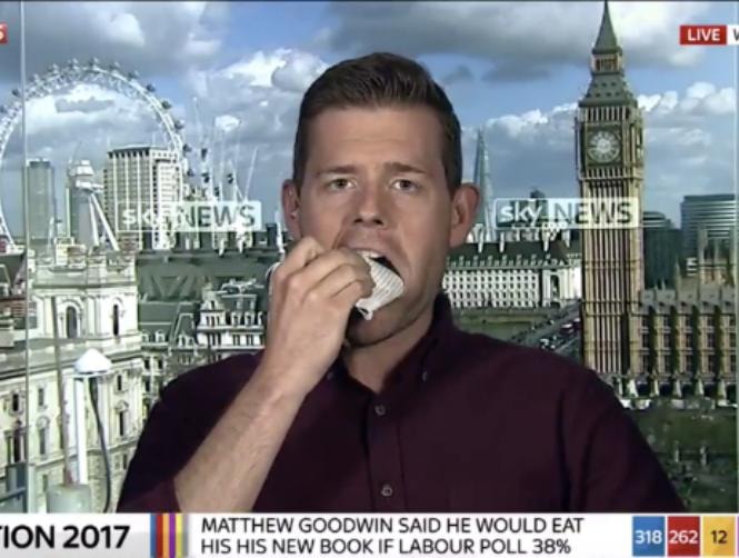 This politics expert really did eat his words today when he swallowed pages from his Brexit book live on television after his bet on Labour's performance in the General Election proved wrong.