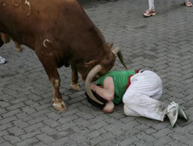 The bulls which run in the morning are taken to the bull ring in the afternoon, where they spar with a matador to the death.