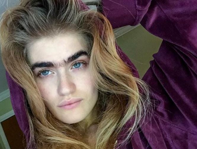 Now, a 20-year-old model is making a similarly empowering statement with her thick dark unibrow.