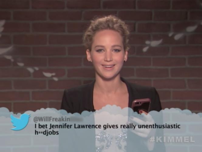 Jennifer Lawrence took her mean tweet in good humour when she appeared on the basically-viral segment of Jimmy Kimmel Live.