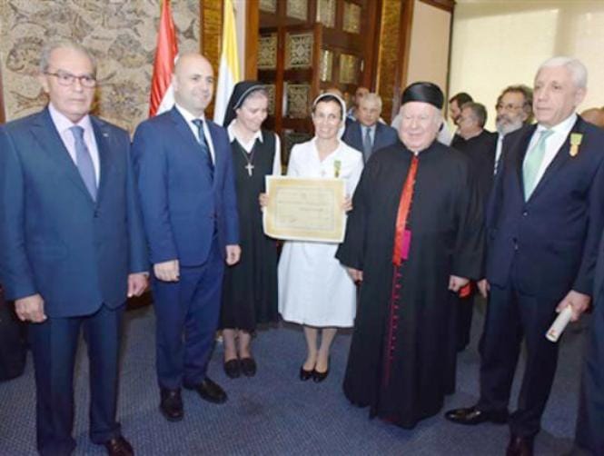 ثم قلد الخازن ومطر وحاصباني وأبي خليل وسام المجلس العام الماروني المذهب لأبي شبلي ويارد "تقديرا لإنجازاتهما مع الفريق الطبي والإداري".