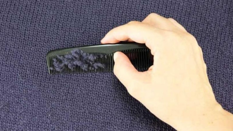 3- استخدام المشط: ونعني به المشط ذات الأسنان الرفيعة للغاية، حيث ما عليكم فعله هو وضع قطعة الملابس بشكل مستقيم وتمشيطها بعناية من الأعلى وصولا إلى الأسفل، وستلاحظون كيف ان المشط يلتقط الوبر الموجود عليها.
