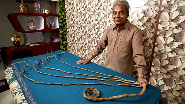 62 عاما مرت والقصافة لم تلمس أظافر يد “شيندهار شيلال” اليسرى،فالعجوز الهندي فاز للمرة الثانية على التوالى بلقب أطول أظافر في العالم بسبب عدم قصه لها منذ عام 1952، بعد دخوله في موسوعة “جينيس” في نوفمبر 2014.