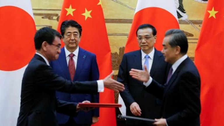 The agreements were signed during Japanese Prime Minister Shinzo Abe's visit to Beijing for the first formal Sino-Japanese summit in seven years, as Asia's two biggest economies looked to further build relations and trust against a backdrop of trade friction with the United States.