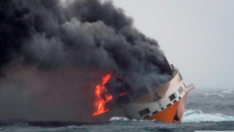 The fire is thought to have broken out on the car deck before spreading to a container, however the cause is unknown, Lozier said.