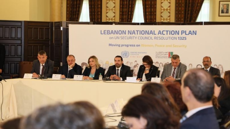 Prime minister Hariri delivered the following speech: "In 2017, my government entrusted the National Commission for Lebanese Women with the task of developing a National Action Plan on UN Security Council 1325.