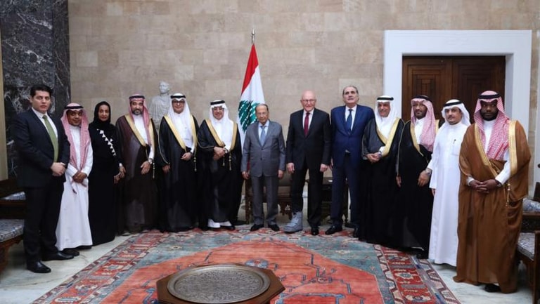 مواقف الرئيس عون جاءت في خلال استقباله قبل ظهر اليوم في قصر بعبدا، وفدا من مجلس الشورى في المملكة العربية السعودية برئاسة عضو المجلس صالح بن منيع الخليوي والسادة: محمد بن راشد الحميضي، محمد بن مدني العلي، ناصر بن عبد اللطيف النعيم والدكتورة نورة بنت فرج المساعد، وعدد من المسؤولين الاداريين في المجلس.