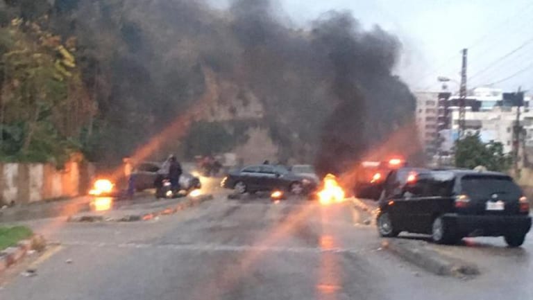 بالصورة: محتجون في طرابلس يقطعون الطريق العام عند طلعة البحصاص الهيكلية بالاطارات المشتعلة