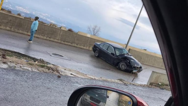 بالصورة: حادث سير في بحمدون بسبب تسرّب مادة المازوت على الطريق العام