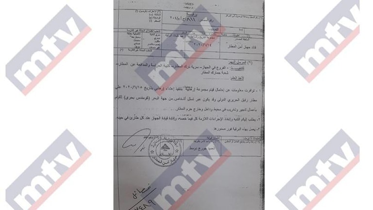 خاص موقع mtv بالصورة: وثيقة تحذّر من اعتداء إرهابي على المطار