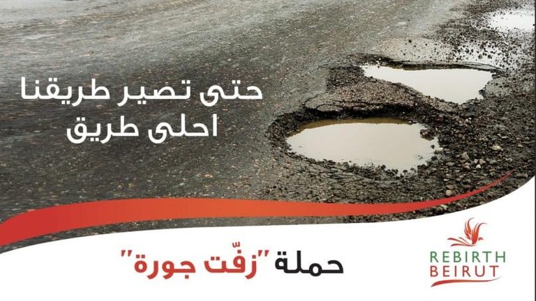 أطلقت جمعية Rebirth Beirut حملة "زفت جورة"، تحت شعار "حتى تصير طريقنا أحلى طريق"، التي ستبدأ كمرحلة أولى في بعض شوارع بيروت، على أن يتوسع العمل تدريجيا ليشمل الاحياء والشوارع الأخرى في العاصمة".