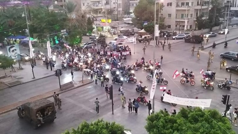 نظم عدد كبير من الدراجات النارية مسيرة انطلقت من مدخل صيدا الشمالي، وجابت شوارع صيدا، وصولا إلى ساحة إيليا، حيث ركنها أصحابها وسط الساحة وانضموا إلى المعتصمين.