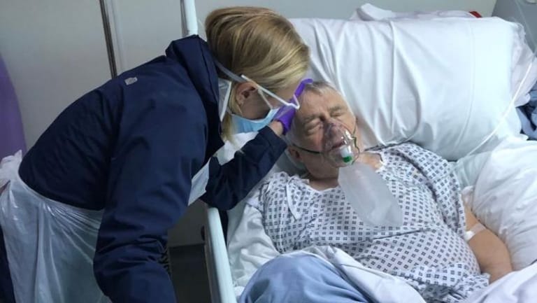 Hours before, Myles posted a photograph of herself at her father's bedside wearing a pair of plastic gloves, an apron and a surgical face mask.