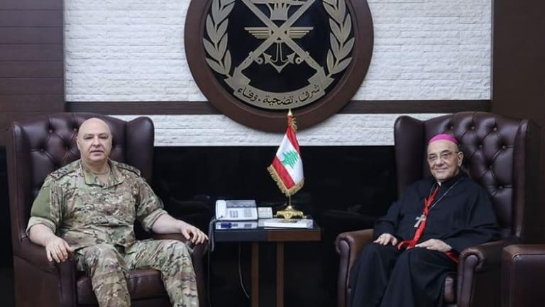 Army Commander, General Joseph Aoun, received at his Yarzeh office the Head of the Chaldean Church in Lebanon, Bishop Michel Kassarji.