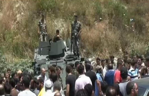 Supporters of Assir as well as a group of Salafists arrived little before the funeral decided before noon prayer and blocked the Sunni cemetery’s entrance with sandbags and burning tires. Fears spread when rumors noted that Hezbollah and Assir fighters crowded heavily fully armed. Directly, Lebanese soldiers in armored personnel carriers arrived and conducted patrols on the city entrances, Sahat Annejmeh, Taamir, Faylat, Sirob and Bilal Bin Rabah mosque surroundings.