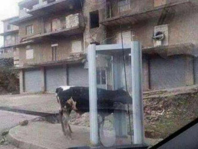 نشرت مؤسسة الـ"يازا" عبر صفحتها على موقع التواصل الإجتماعي "تويتر" صورة لبقرة يظهر أنها ضلّت طريقها، فدخلت عن طريق الخطأ إلى كشك للهاتف، لتبدو وكأنها تجري إتصالاً هاتفياً.