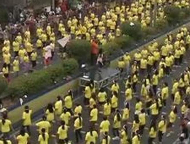وإحتشدت النساء وهنّ يرتدين قمصانا صفراء بطول 1.2 كيلومتر على طريق سريع، وأخذن يتمرن بشكل متواصل على أنغام أغنيات ذات إيقاع سريع لأكثر من ساعة.