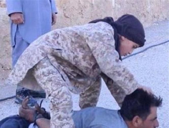 Video of the incident has been shared by ISIS supporters on social media and shows a child no older than 10 carrying out the brutal beheading.