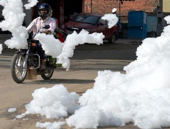يعاني سكان مدينة بنغالور الهندية من ظاهرة غريبة، حيث تغطي رغوة بيضاء سامّة غامضة شوارع مدينتهم.