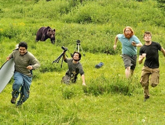 1 - One bear, two tripods and four men legging it for their lives. This went viral - then was promptly debunked. It was actually taken on a film location scout in Colorado four years ago and Photoshopped with a stock shot of a bear then shared on Facebook to spook their friends.