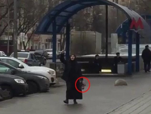 A woman dressed all in black and holding what is thought to be a child's severed head has been arrested near a metro station in Moscow. She was shouting, "I am a terrorist," and reportedly threatened to blow herself up.