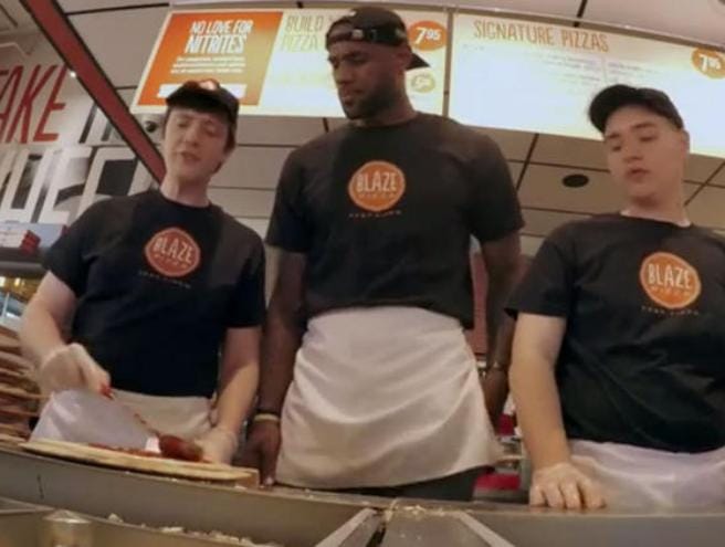 فاجأ لاعب فريق كليفلاند كفاليرز لكرة السلة ليبرون جيمس رواد مطعم "Blaze Pizza" في بسادينا في الولايات المتحدة الاميركية حيث انتحل صفة نادل وراح يأخذ الطلبات من الزبائن الذين لم ينتبهوا ان جيمس هو الشخص الذي يقوم بأخذ الطلبات منهم. ولكن بعد فترة وجيزة يعرّف جيمس عن نفسه لتكشف الخدعة وينصدم الزبائن بأنه لاعب كرة السلة الشهير.