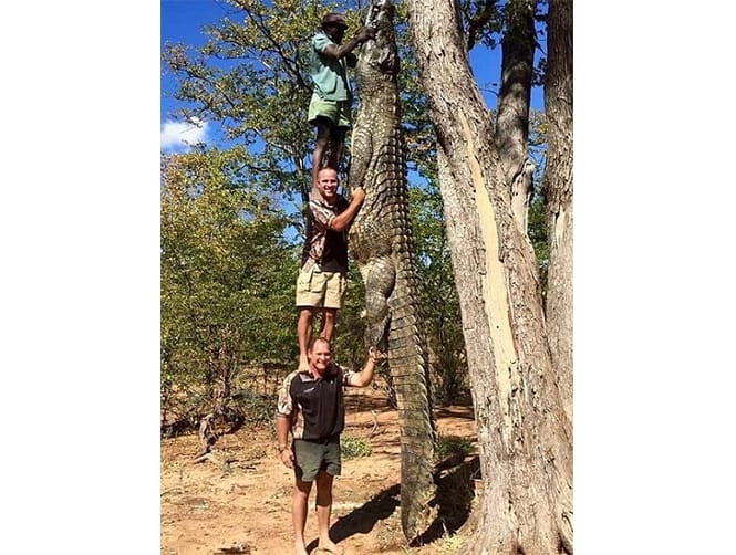 ونشرت سيدة بريطانية هذه الصورة على حسابها على موقع التواصل الاجتماعي "فيسبوك"، على أمل معرفة المكان الذي التقطت فيه الصورة، والتي يظهر فيها 3 رجال يقفون فوق أكتاف بعضهم البعض، إلى جانب التمساح الضخم المعلق من جذع شجرة، وفق ما أوردت صحيفة "دايلي ميل" البريطانية.