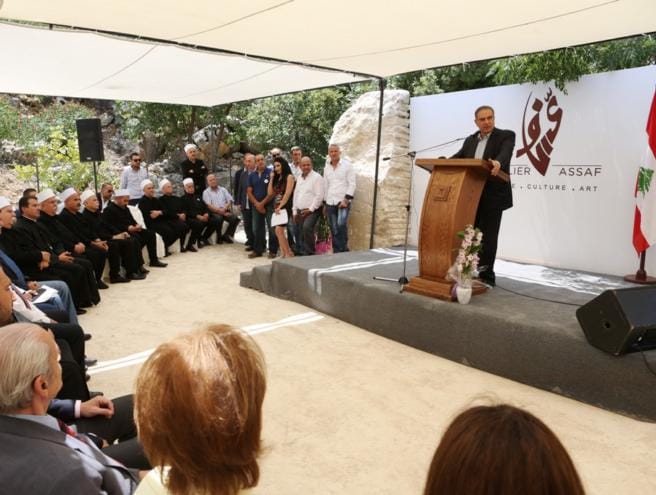 وتابع: "غدا سيعقد لقاء في المختارة لإعادة ترميم كنيسة أثرية فيها، ولكن ما هو الدين؟ أليس هو احترام الله واحترام جمال الطبيعة والبيئة فيها وجمال الإنسان وحتى تحويل الصخرة الى عمل فني؟ ليس الدين أن نبني كنيسة فقط وفي المقابل نحطم البيئة ونلوث المياه، هذا العمل هو مجد لله، ولا بد لنا من أن نحيي آل عساف على ذلك: عساف ومنصور وعارف والوالد والوالدة كمال وجميلة الذين يعود اليهم الفضل في هذا المشروع الذي سيدخل الخارطة السياحية والثقافية في لبنان، خصوصا أن فن الله بارز في رسم معالم هذه المنطقة، إضافة الى جمال الإنسان الموجود في وجوه أبنائها".
