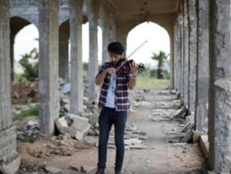 وسط أنقاض موقع أثري يقدسه المسلمون والمسيحيون في مدينة الموصل العراقية أقام عازف الكمان العراقي أمين مقداد حفلا صغيرا في المدينة التي أجبره متشددو تنظيم داعش على الهرب منها.