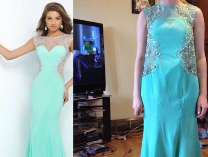 Another unfortunate woman bought a gold, fishtail prom dress with a sheer skirt.