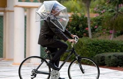 ابتكر ألان كاوفمان (49 عاما) من ولاية فلوريدا الأميركية مظلة من دون مقبض يد مقاومة للرياح يمكن أن تساعد راكبي الدراجات في مقاومة الأمطار الغزيرة.