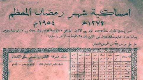 وكانت الإمساكية علي ورقة صفراء مزخرفة الإطار مكتوب عليها مواعيد الصيام والصلاة بالتوقيت العربي وهو غير التوقيت الإفرنجي، الذي نتعامل به الآن، فمثلا الفجر على ٢٥: ٩ عربي معناها ٢٥: ٣ صباحا بتوقيتنا الذي نعرفه.