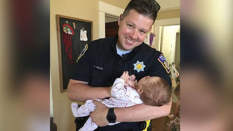 While on patrol, he would often talk to the unnamed woman, and on one such occasion when his wife was Ashley was with him, the two women began talking about being a mum, and its challenges, CBS San Francisco reports.