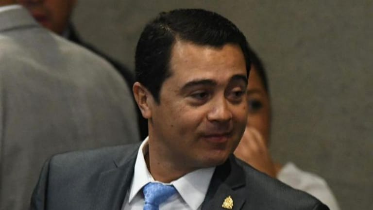 "This is a heavy blow for the whole family," the president told reporters in his hometown of Gracias, in western Honduras. "I hope the justice system gives him the room to defend himself, and as a family, we will do what we can to support him."