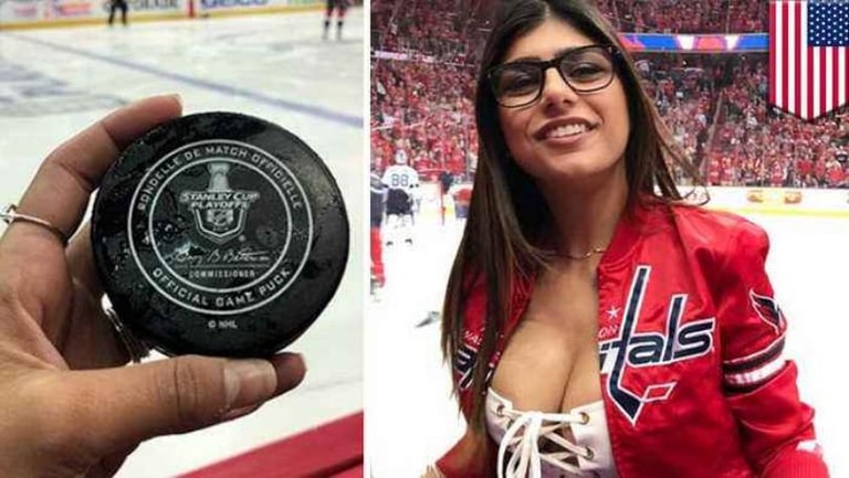 Last May, Khalifa posted a pic of herself from a Washington Capitals Stanley Cup game, where she said a pluck made its way through the stands and struck her right in the chest.